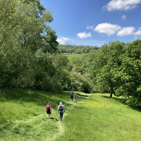 Your path follows a brook as it twists and turns past old mills and weirs and through thick woodland with large deposits underground of the warm coloured Bath stone which was mined here extensively until recently, for building. Some of the old quarries are now bat sanctuaries. This is tranquil countryside with deep valleys sheltering a chocolate box village or two and a single pub a very picturesque refreshment spot. You reach habitation at your overnight stay!